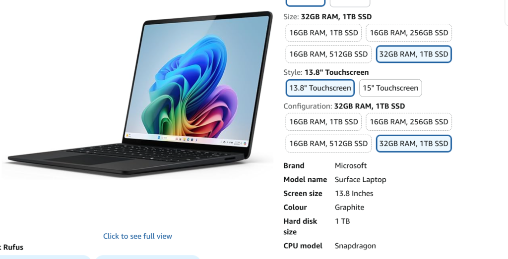 Get Microsoft Co-pilot surface laptop with monthly payment plan on Amazon.