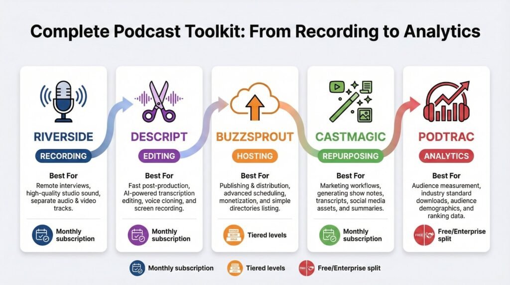 There is no single “perfect” stack for podcasters. The best results come from choosing tools that reduce friction, not add features for the sake of novelty.